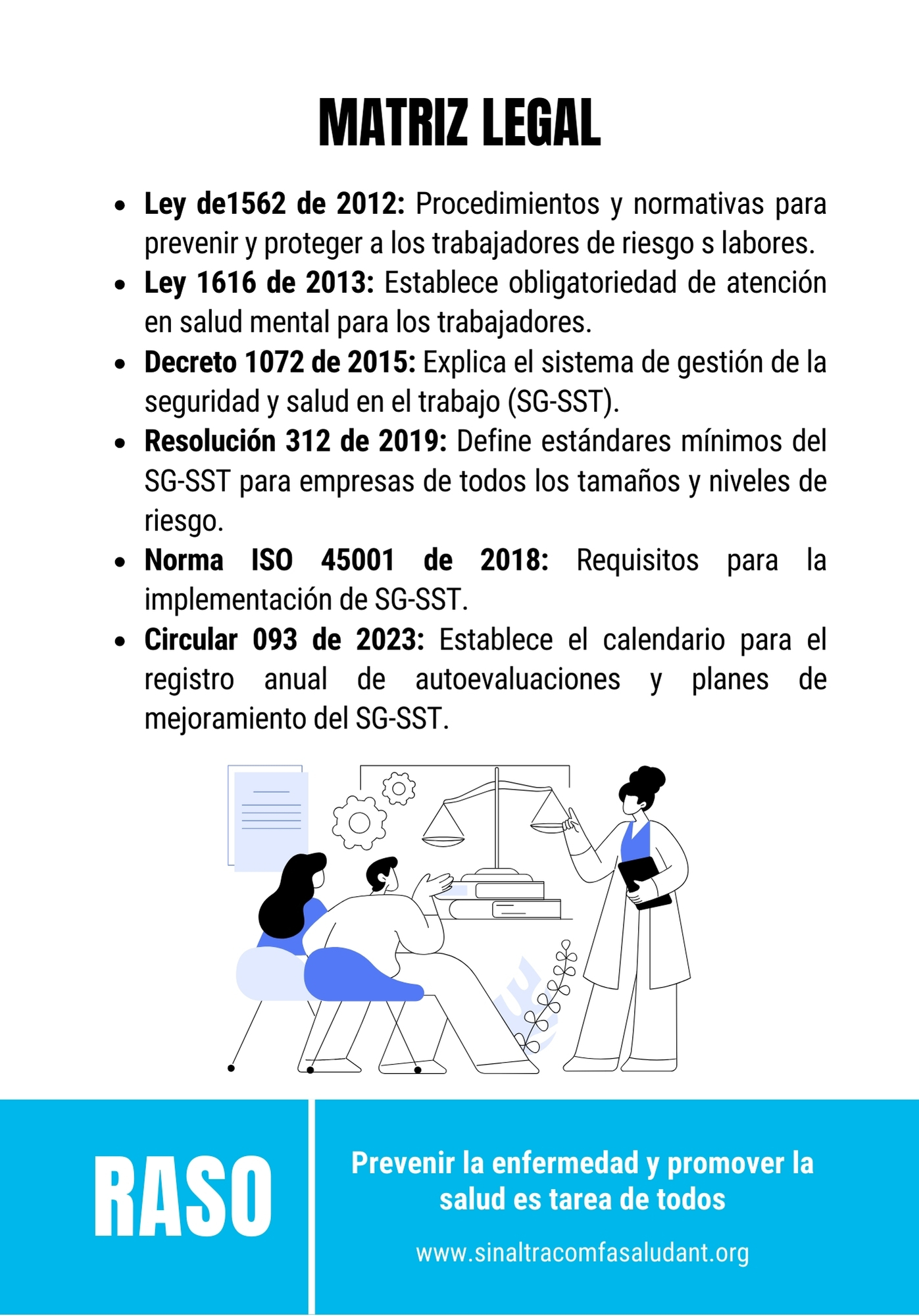 Conscientes de la importancia vital de combatir la carencia de conocimientos sobre temas generales de salud laboral y de las diversas áreas del SG-SST, hemos creado un espacio virtual educativo, llamado RASO, el cual se ha estado desarrollando los miércoles a las 8 pm.