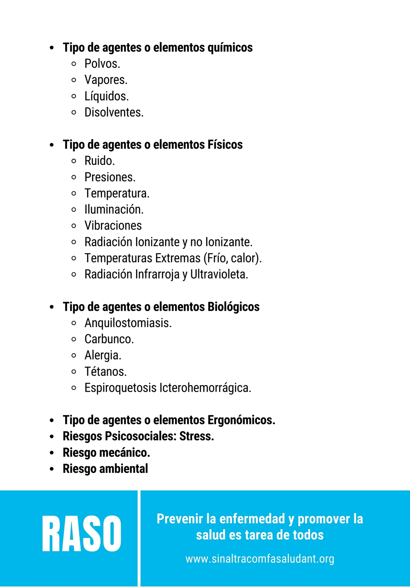 Tipos de Riesgos: El documento clasifica los riesgos en categorías específicas, como riesgos físicos, químicos, biológicos, ergonómicos, psicosociales y de seguridad.